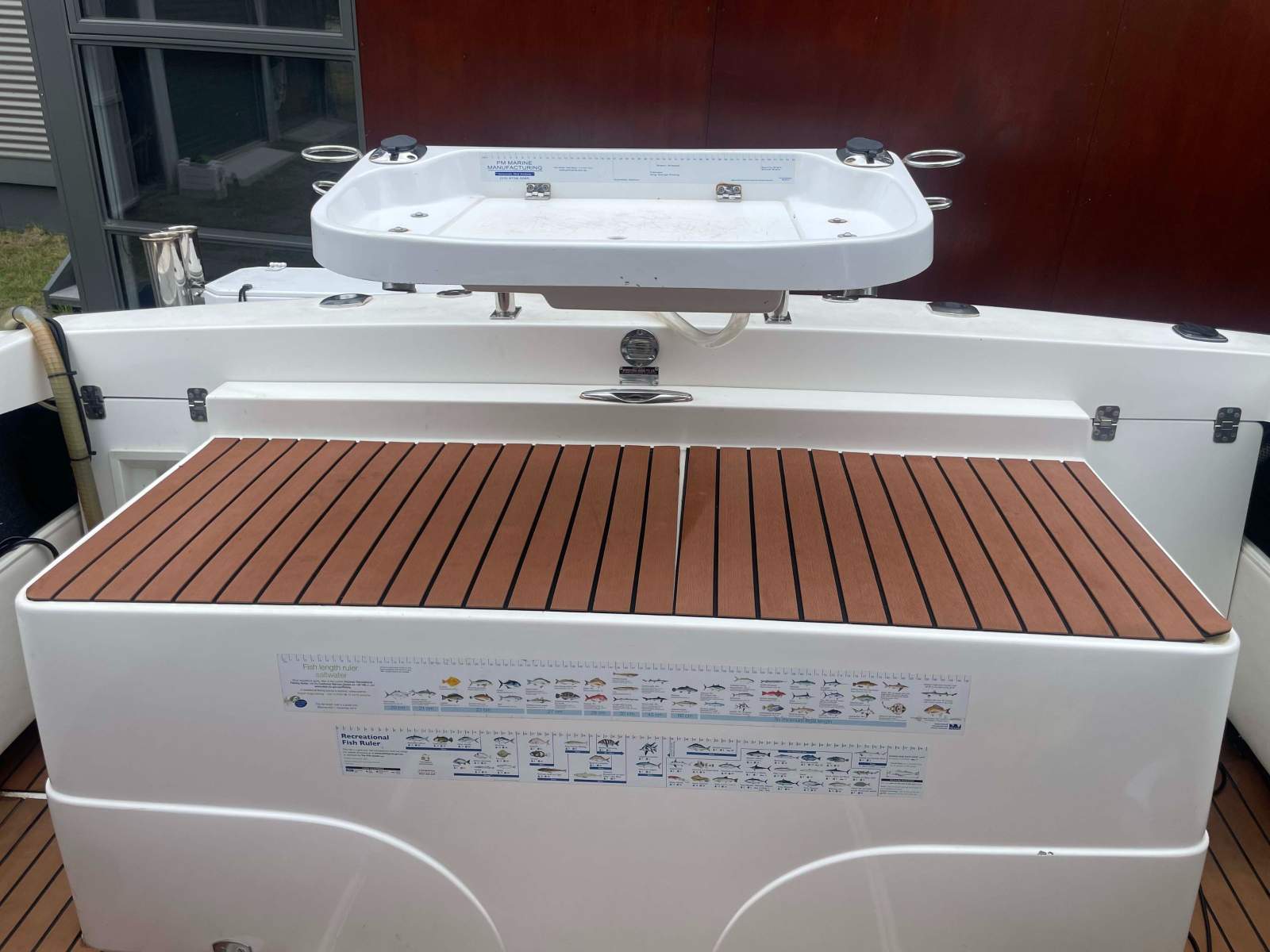 | Deck gear | Reelax outriggers and rod holders Pot hauler Live bait tank with Hookem Slimmy Tubes. Bait-board and prep station. Note: Installation does not impede access to the engine compartment. |